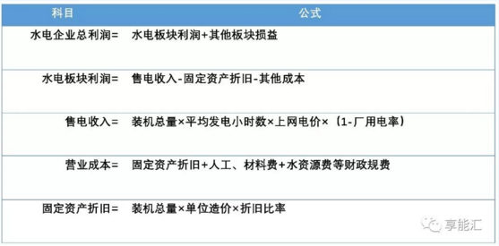水電板塊利潤=裝機總量×平均發電小時數×上網電價-固定資產折舊-其他成本。