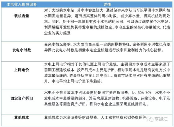 顯然,裝機容量、發電小時數、上網電價三者共同決定了水電企業的營業收入,而機組固定資產折舊則是水電企業成本的主要構成。