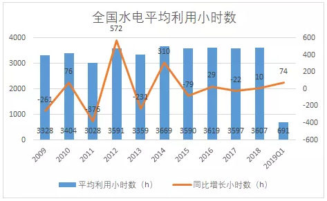 于是,近兩年水電利用小時數得到有效改善。2018 年全國水電設備平均利用小時為 3613 小時,較 2017 年略微增長。而2019年第一季度,利用小時數又同比增加74小時。