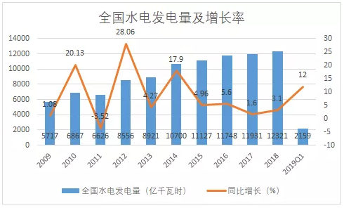 利用小時數的升高明顯的體現在了發電量上。2019年一季度,水電為2159億千瓦時,同比增長12%,增速比上年同期提高9.4個百分點。